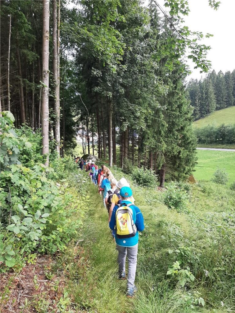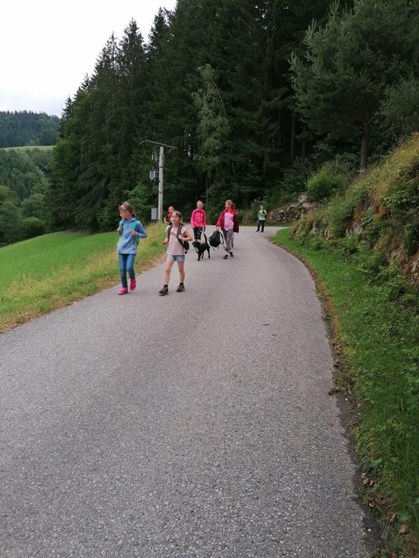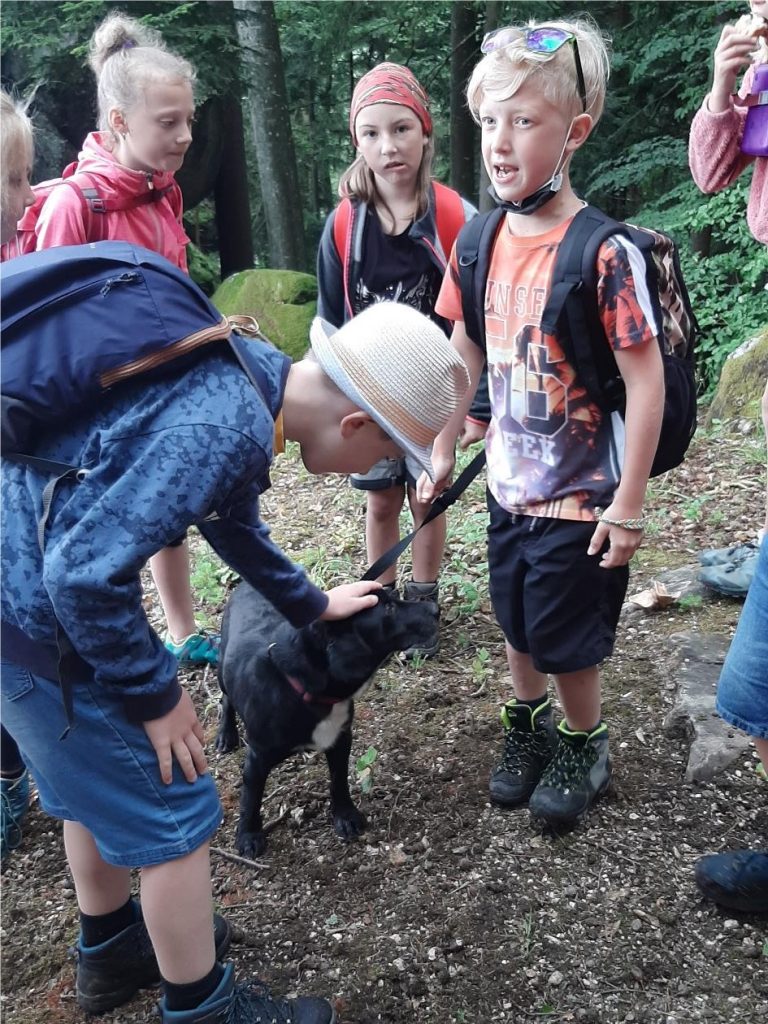 Begleitet wurden wir nicht nur von Fr. Renner, sondern kurzerhand auch von „Bello“, dem Hund von Julians Großeltern (Ortlehner). Er ließ sich einfach nicht abschütteln und wanderte so mit uns gemeinsam über Stock und über Stein. Den Kindern machte das sichtlich Spaß.