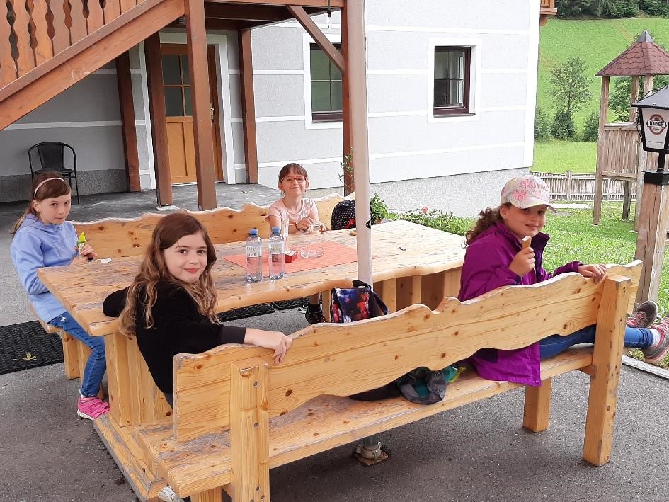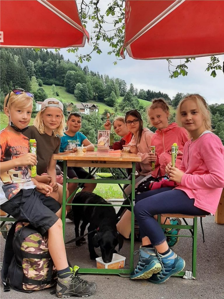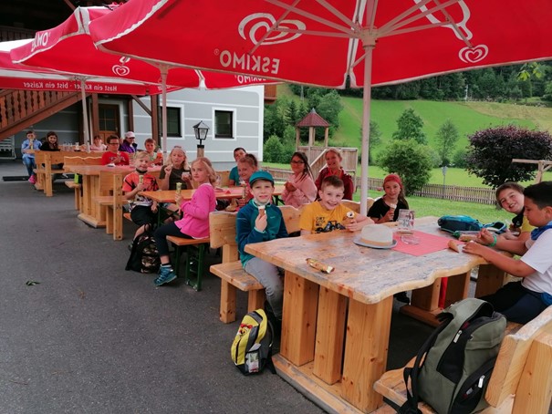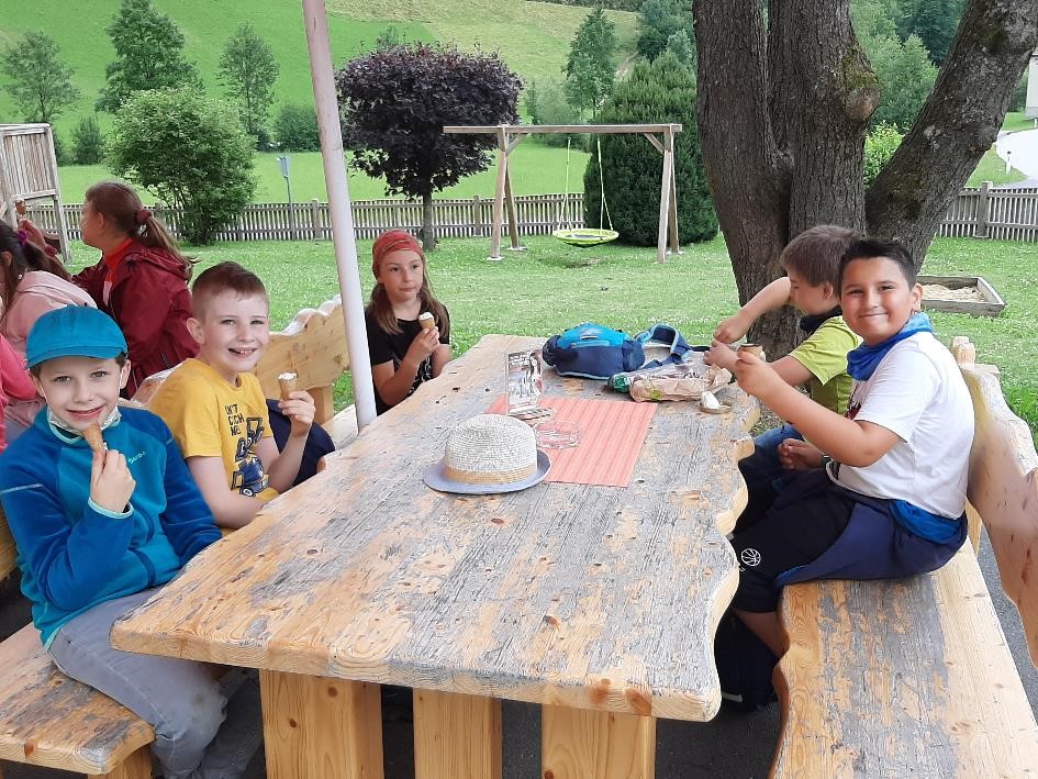 Nach einer kurzen Rast bei Frau Lehrer Wallner machten wir uns auf in die Angermühle. Dort bekamen wir vom Elternverein ein leckeres Eis spendiert. Herzlichen Dank dafür.