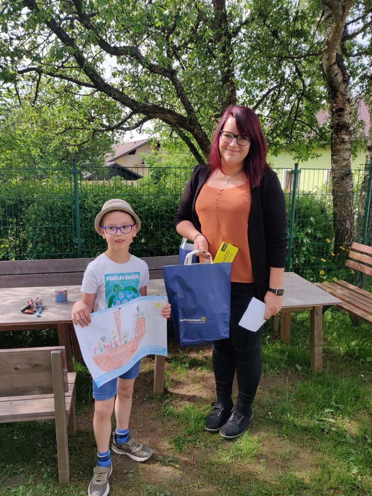 Am 23.5.2022 wurden die Sieger prämiert. Marlene und Michael M. waren die Sieger ihrer Klasse und bekamen ein Geschenk-Sackerl der Raiffeisenbank. Alle anderen Kinder erhielten als Dankeschön für die Teilnahme und ihre tollen Bilder ein Geschicklichkeitsspiel.