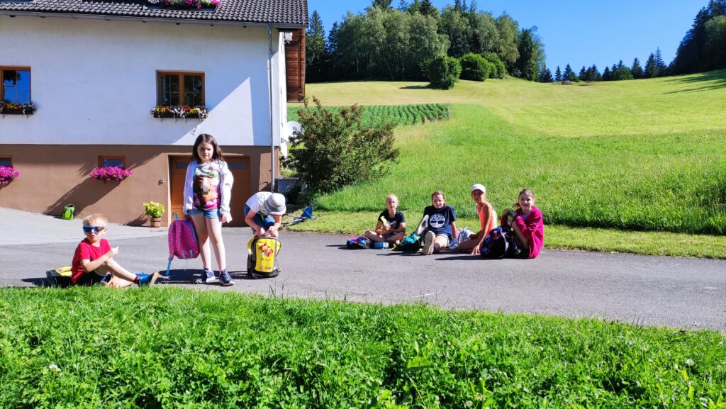 Am 21. Juni wanderte die ganze Schule bei schönem Wetter zur Familie Leonhartsberger. Dort angekommen, jausneten wir und bekamen von Frau Leonhartsberger sogar leckeren Kuchen! Danach tobten die Kinder noch eine Weile auf dem Hof und streichelten die Tiere. Am Heimweg bekamen wir noch ein Eis von den Elternvertreterinnen spendiert!