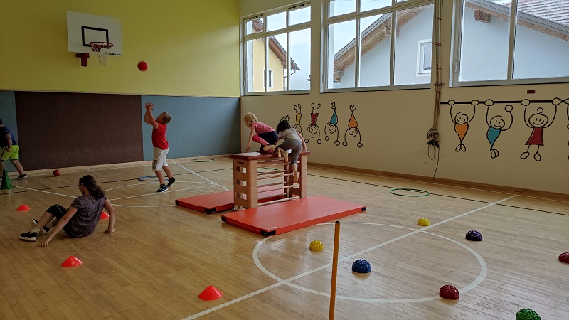 In der letzten Schulwoche stand dieses Jahr ein Sporttag am Stundenplan. Die Schüler und Schülerinnen konnten sich bei 10 verschiedenen Stationen austoben. Mithilfe eines Stationenplans konnten sie sich ihre Aufgaben selber wählen, wie zum Beispiel Sackhüpfen, Weitwurf, Eierlauf, Luftballon Ping Pong und ein Geschicklichkeitsparcour.
