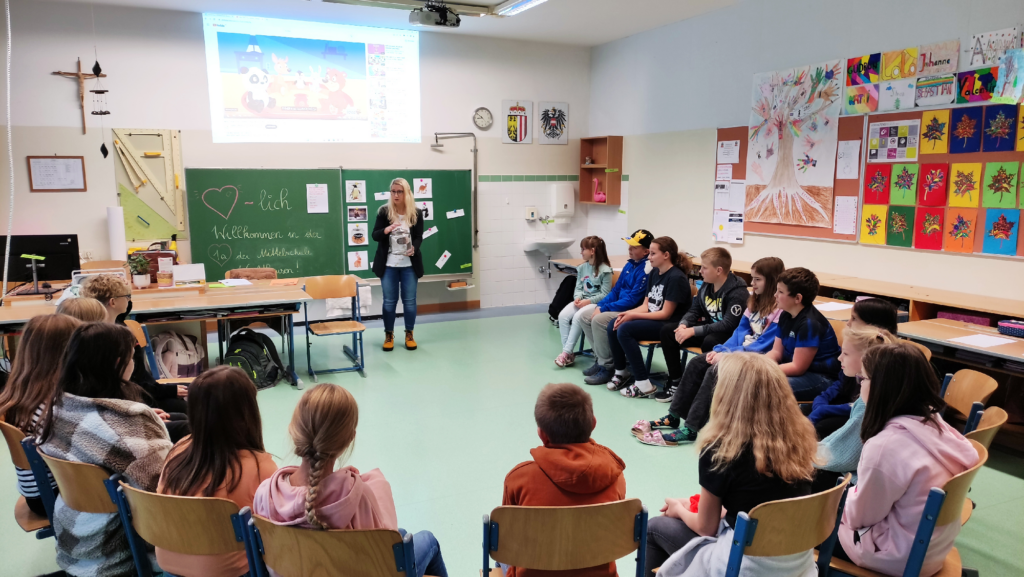Als Nächstes erhielten wir interessante Informationen über die Mittelschule von Fr. Dir. Höbart. Dann durften wir drei Gruppen im Unterricht besuchen, die etwas für unsere SchülerInnen vorbereitet hatten.