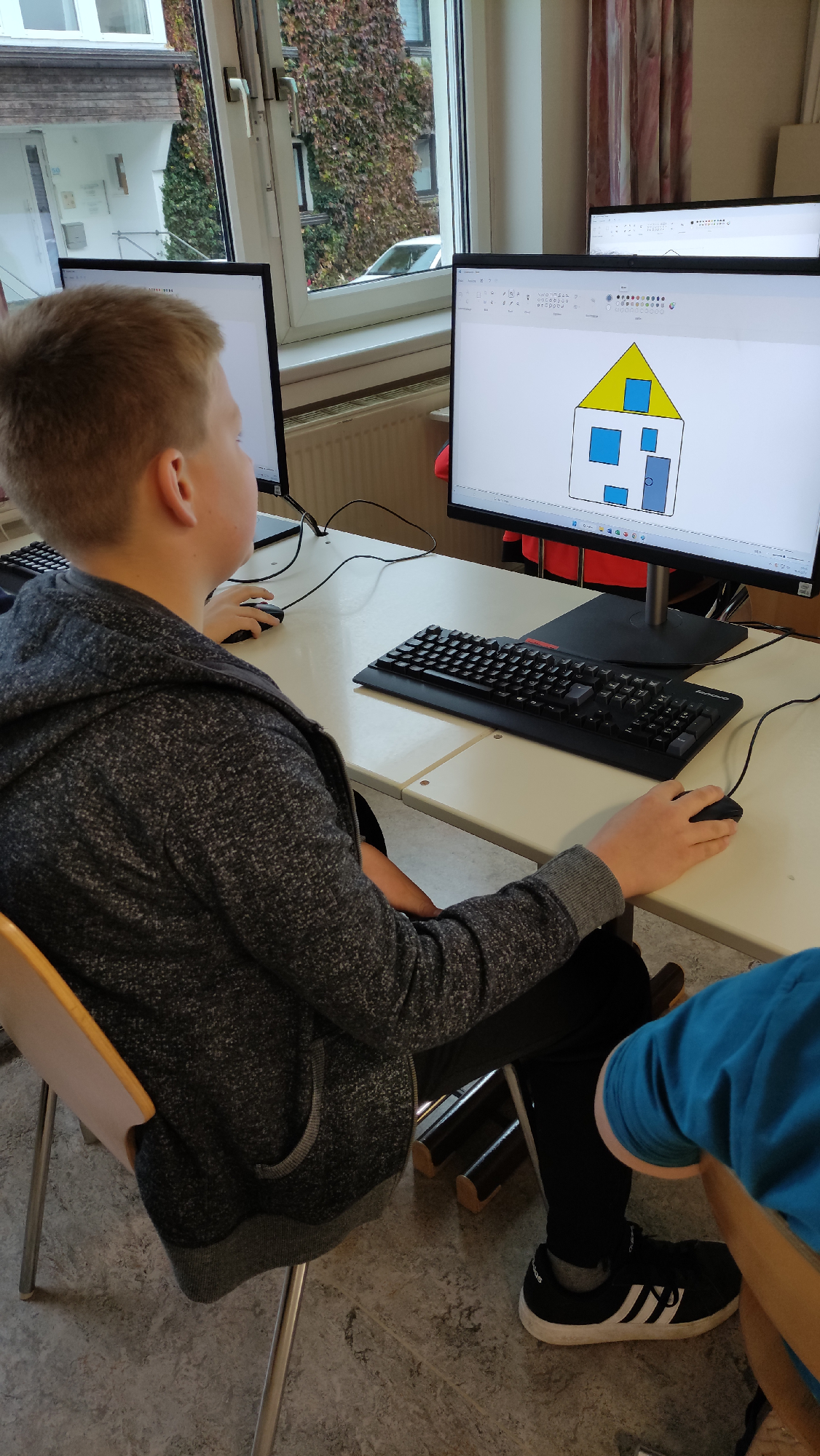 Bei Fr. Pikous-Stöger fanden wir im Englischunterricht heraus, wer denn die Cookies gestohlen hatte. In Informatik bei den SchülerInnen und Schülern von Herrn Pikous durften sich die Kinder als Baumeister im Programm „Paint“ versuchen: