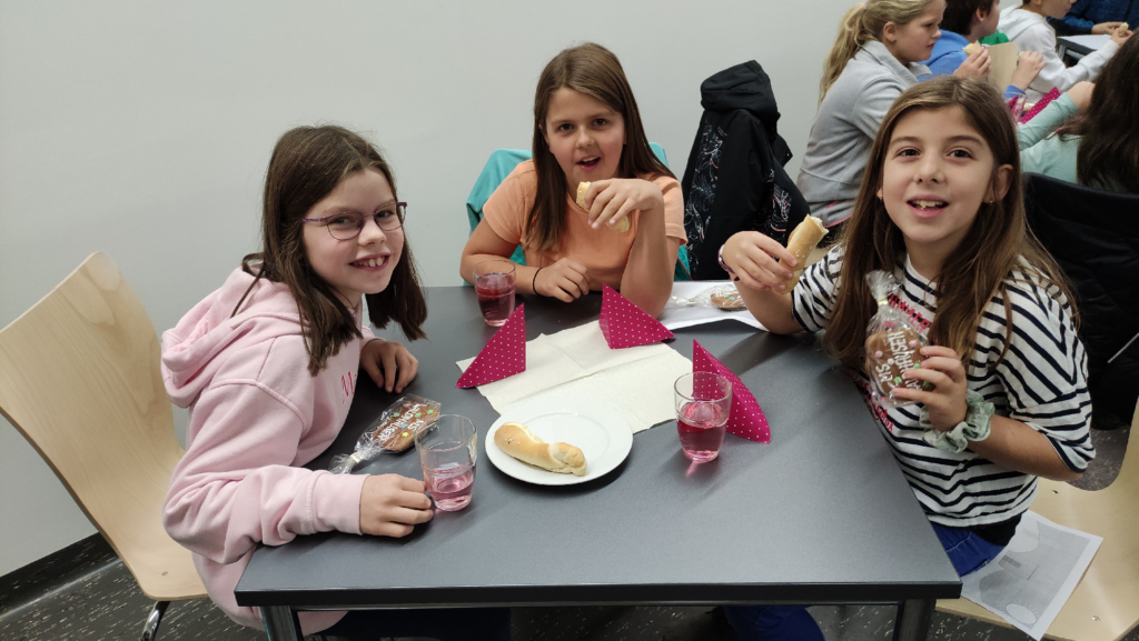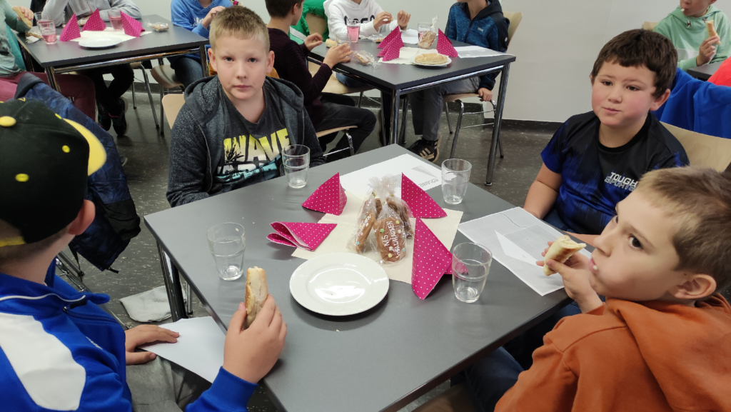 Nach diesen Unterrichtseinblicken bekamen wir eine Jause und wurden anschließend noch durch den Rest des Schulgebäudes (Werkraum, Musikraum, Turnsaal, Bibliothek…) geführt.