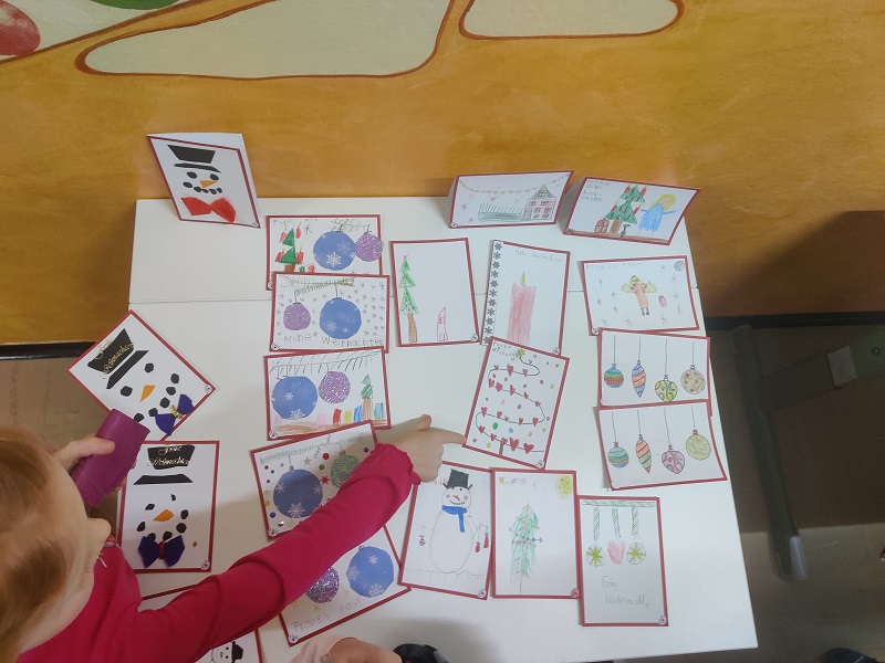 Die Kinder der VS Dorfstetten gestalteten heuer bereits zum zweiten Mal Weihnachtskarten der Aktion „Rote Nasen“. Für 1,50 € wurden die Karten in der Schule und am Adventmarkt Dorfstetten verkauft.