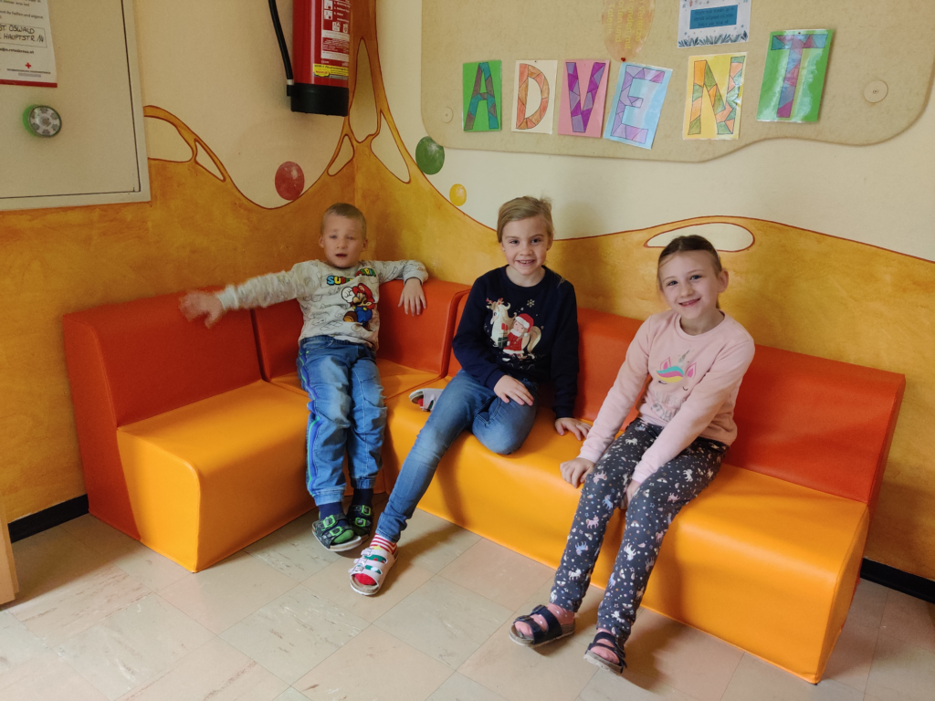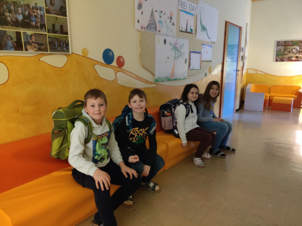 Die Kinder bekamen neue Sessel, die sinnvoll für eine gesunde Haltung sind. Es sind Rollsessel, die höhenverstellbar sind, sodass sich jedes Kind seine eigene passende Sitzhöhe einstellen kann. Außerdem kann der Sessel sich drehen, was praktisch ist, wenn die Tische nicht frontal zur Tafel ausgerichtet stehen. Die Sessel sind hochwertig, denn sie geben zusätzlich noch nach und passen sich der Körperbewegung an.