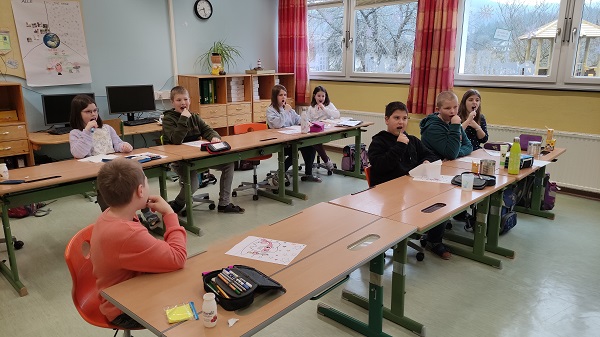 Am 23. Februar waren wieder Kroko und Denise im Zuge des Projekts Apollonia in der Schule. Die beiden machen die Kinder aufmerksam auf die richtige Mundhygiene.