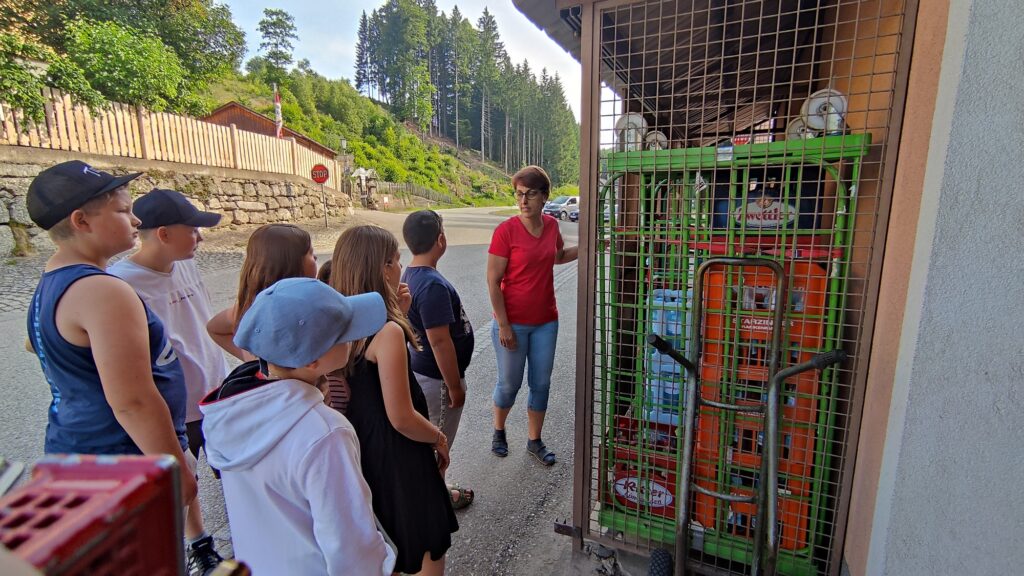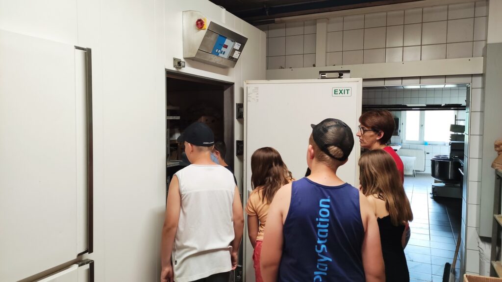 Am 20. Juni durfte die zweite Klasse das „Nah&Frisch“-Geschäft der Familie Göbl besuchen. Frau Göbl und ihre Mitarbeiterinnen führten die Kinder herum und erklärten, wie die Abläufe in einem Geschäft funktionieren. Sie durften den Lagerraum, den Kühlraum, den Tiefkühlraum und die Backstube besichtigen und bekamen erklärt, wie und wann die unterschiedlichen Waren bestellt werden und wie überhaupt entschieden wird, was ins Sortiment kommt. Außerdem durften sie sich am Computer anschauen, wie das Bestellprogramm aussieht und funktioniert und lernten, was noch alles für Arbeiten in einem Lebensmittelgeschäft anfallen.