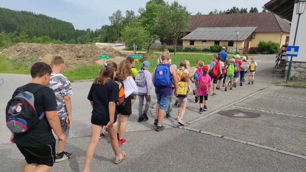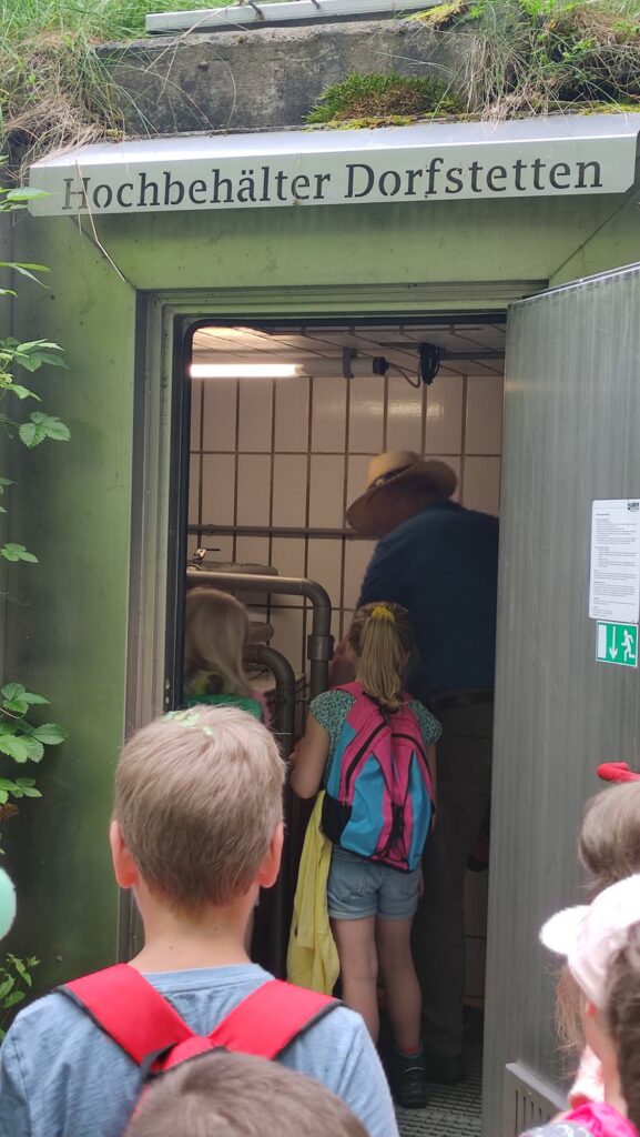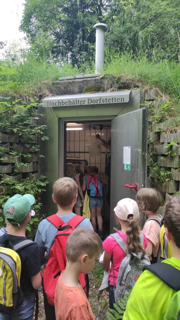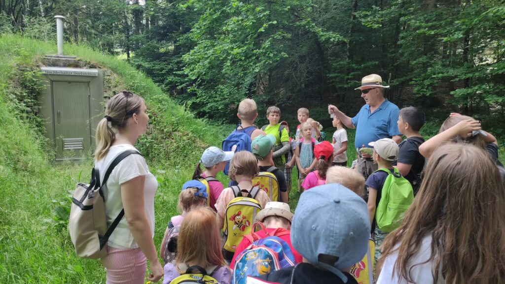 Am Mittwoch, dem 21. 6. 2023, wanderte Herr Bürgermeister Fuchs mit den Kindern der Volksschule den Winkl hoch zum Wasserreservoir von Dorfstetten. Jedes Kind durfte einmal hinab in die beiden 4 m tiefen Wasserbecken gucken. Außerdem erzählte er Interessantes über den Bau, der damals von Hand vonstatten ging.