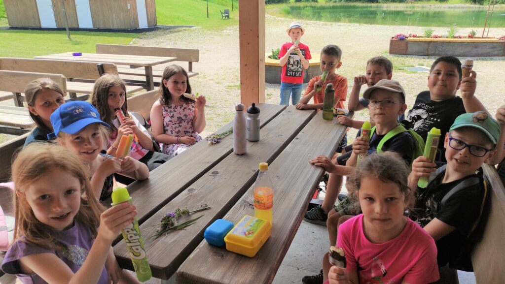 Nach der Besichtigung führte Herr Fuchs die Kinder noch zur Badeanlage, dort bekamen sie als Belohnung ein Eis – was für ein schöner Ausflug!