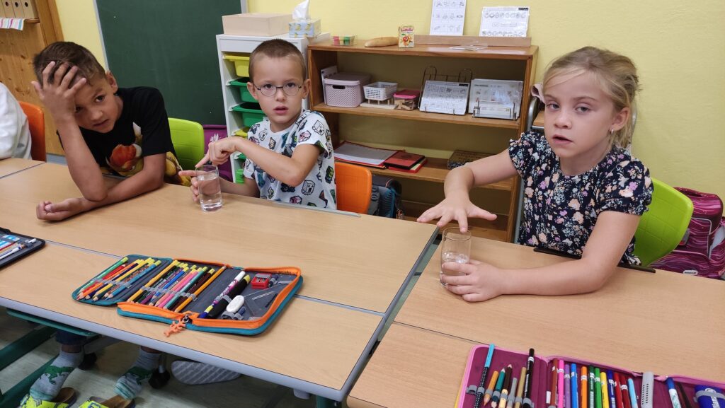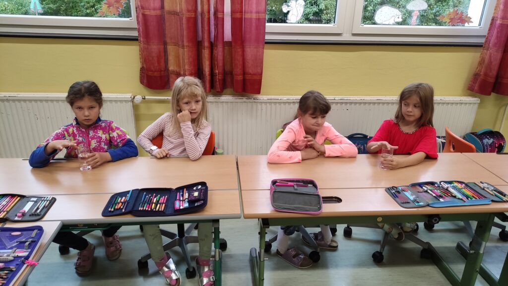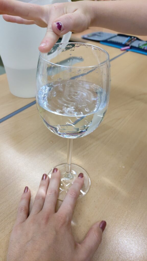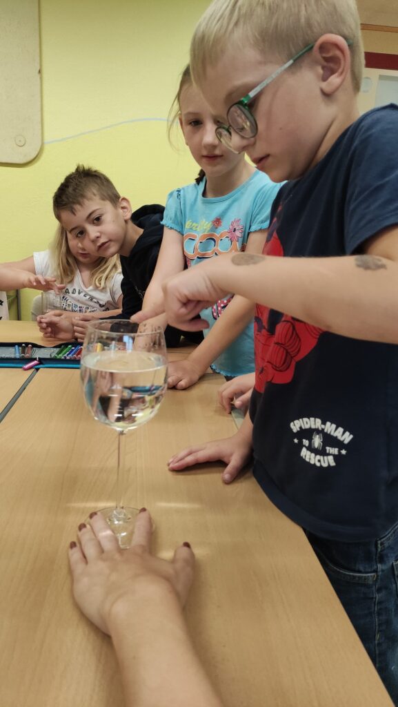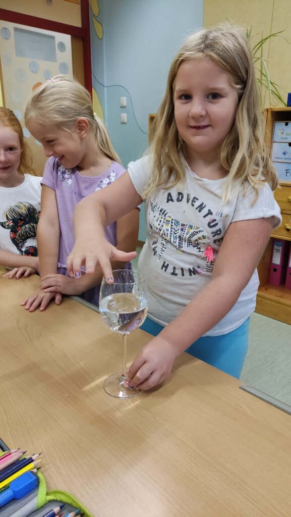 In der ersten Klasse wurde diese Woche zum Song „Unter dem Meer“ aus dem Film „Arielle“ getanzt. Inspiriert davon zeigte Frau Lehrer Lagler den Schülerinnen und Schülern, wie man mit Gläsern Musik machen kann. Es wurde ausprobiert, wann höhere und wann tiefere Töne entstehen. Die Kinder lernten, dass Töne eigentlich Schallwellen sind, die dann von unseren Ohren verarbeitet werden. Da durch das Reiben mit einem feuchten Finger am dünnen Glasrand Töne entstehen, sieht man auch die Schallwellen im Wasser sehr gut. Es war spannend, dies auszuprobieren! Wer die Schallwellen und das Klangerlebnis sehen und hören will, kann die Videos hier ansehen!
