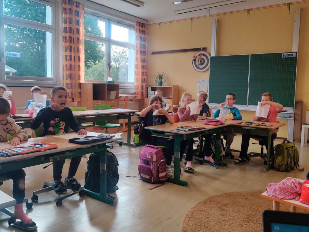Am 23. September fand der erste von zwei Terminen des Projekts Apollonia statt. Im Zuge dessen kommen „Kroko“ oder „Krokoline“ zu den Kindern an die Schulen und besprechen mit ihnen wichtige Aspekte der Zahngesundheit. Das richtige Zähneputzen wird dabei auch immer wieder geübt!