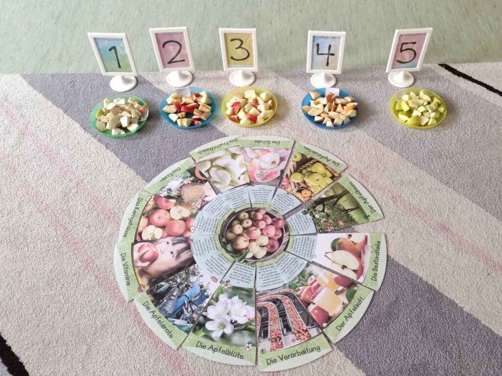 In Sachunterricht beschäftigeten sich die Kinder der 1. Klasse in der ersten Oktoberwoche mit dem Themen „Bauernhof“ und „Apfel“. Ein besonders geschmackvolles Erlebnis war die Verkostung von 5 verschiedenen Apfelsorten. Die Kinder sollten auf einem Arbeitsblatt beurteilen, wie sie welche Sorte fanden. Die Ergebnisse fielen dabei sehr unterschiedlich aus!