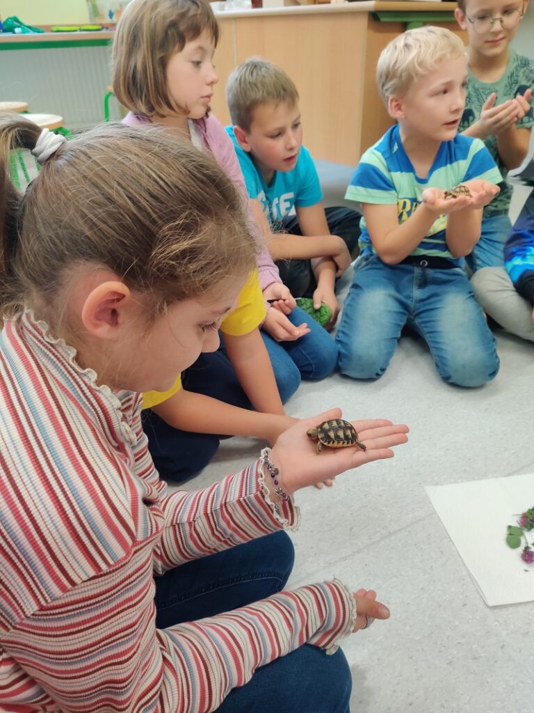 Der Wunsch einer Schülerin war es, ihre Babyschildkröten ihren Mitschüler und Mitschülerinnen zu zeigen. Deshalb wurde passend dazu im Sachunterricht über Schildkröten gelernt. Nachdem die Kinder alle wichtigen Informationen über Schildkröten und ihre Haltung lernten, kamen zum Abschluss die Babyschildkröten zu Besuch in die Schule. Es war ein tolles Erlebnis!