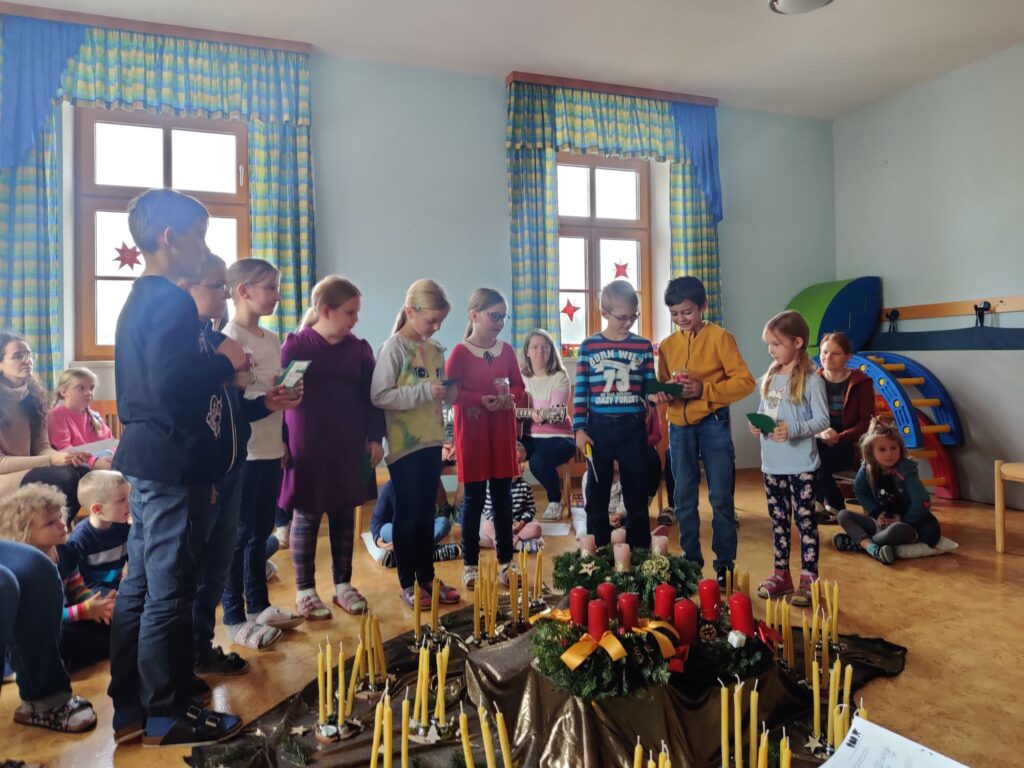 Am 27.11. fand die Adventkranzsegnung statt. Diese feierten wir wieder gemeinsam mit den Kindergartenkindern im Kindergarten. Die von Herrn Dechant Grülnberger vorgenommene Segnung wurde von den Kindern feierlich mit Liedern, Gedichten und Texten umrahmt.