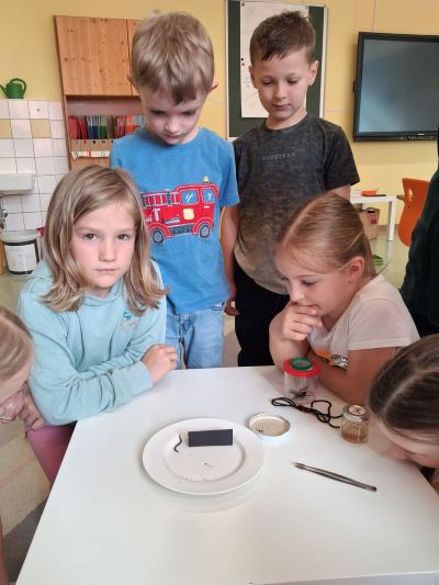 Sie lernten Wiesenpflanzen und -tiere kennen. Viele Kinder brachten bereits ihr großes Vorwissen zu diesem Thema ein. Bei einem kurzen Lehrausgang auf die Wiese fanden sie viele Pflanzen und Tiere, die sie zuvor kennen gelernt hatten und nahmen sie genau unter die Lupe. Außerdem beobachteten wir Rudi, den Regenwurm und fanden mit einem kleinen Experiment heraus, dass Regenwürmer sogar riechen und sehen können. Nach dem Unterricht wurde Rudi wieder in die Freiheit entlassen.