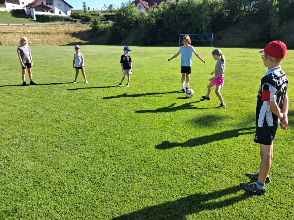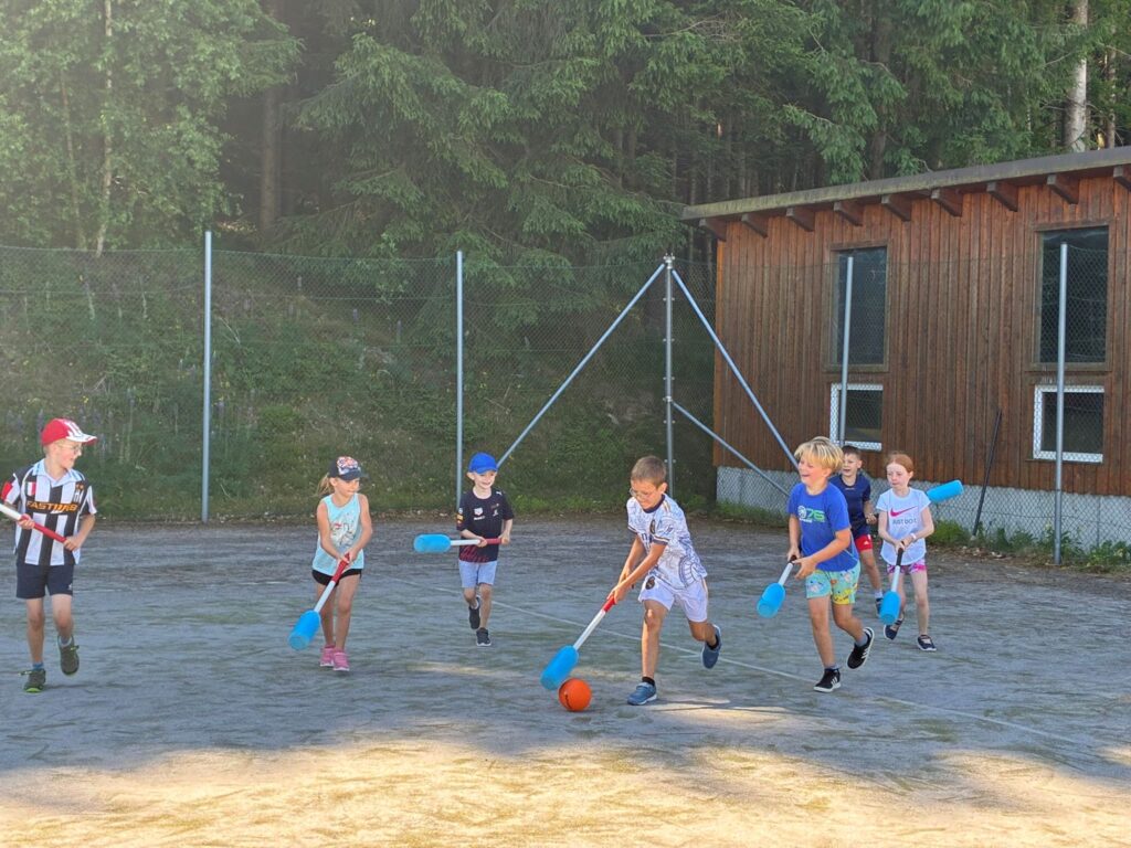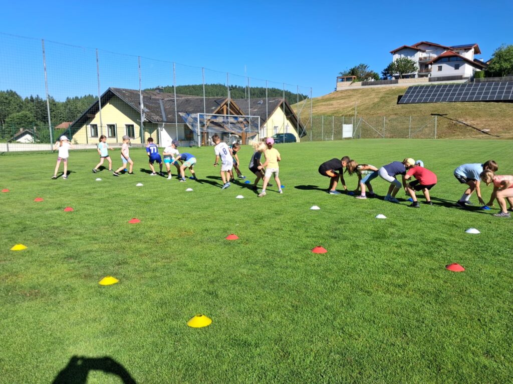 Am 25.6. schwitzten die Schülerinnen und Schüler bei strahlendem Sonnenschein beim diesjährigen Sporttag. Nach einem gemeinsamen Aufwärmen am Sportplatz mit lustigen Staffelspielen absolvierten die Kinder nacheinander die Stationen „Fußball“, „Federball“ und „Hockey“.