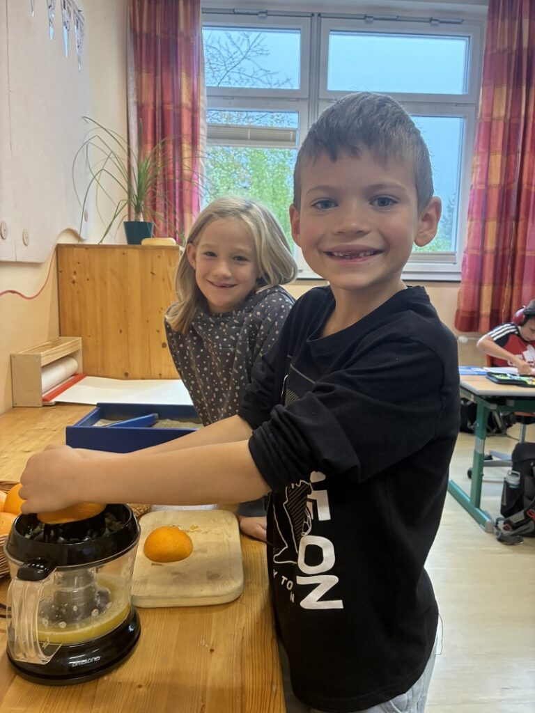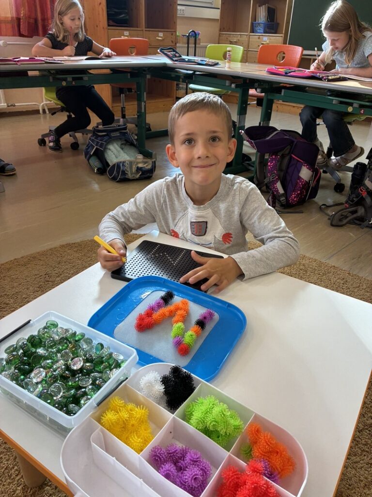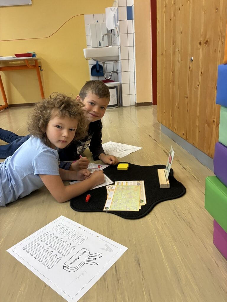 Während die Schulanfängerinnen und Schulanfänger fleißig ihre Buchstaben erforschen, arbeitet die 2. Schulstufe parallel an einem Tagesplan. Damit wird das selbstständige Lernen Schritt für Schritt gefördert.
