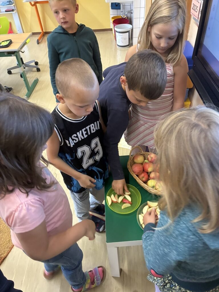 Immer wieder gibt es auch etwas Passendes zum jeweiligen Buchstaben zu essen. Das sorgt für Begeisterung und viel Freude beim Lernen.
