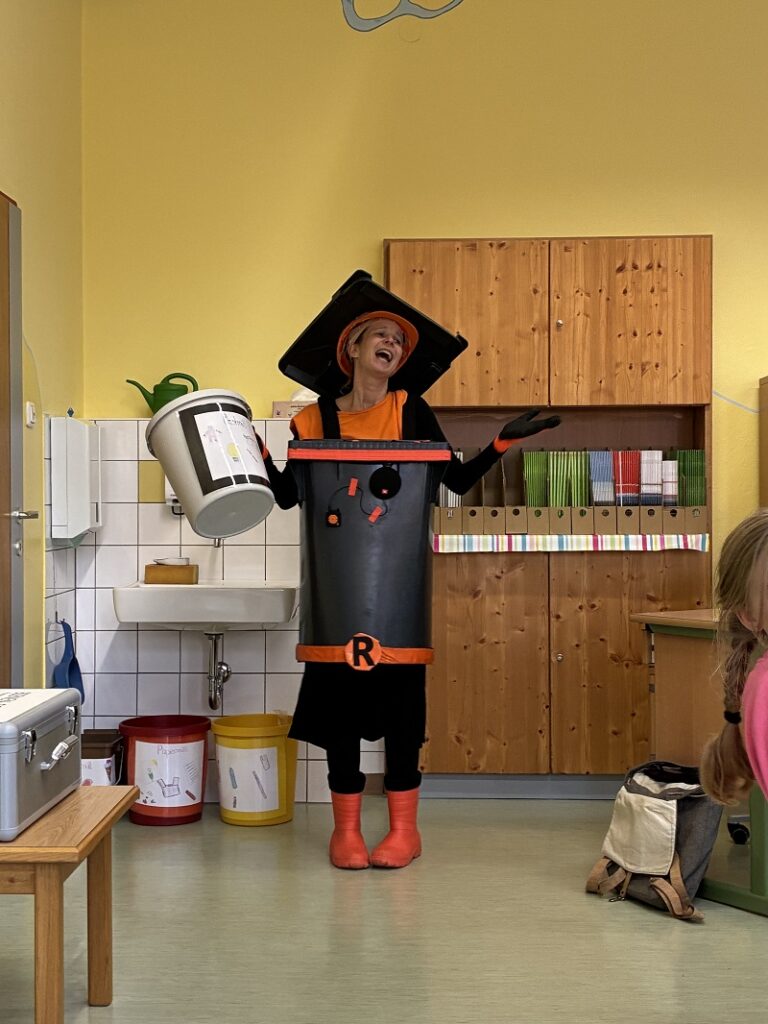 Mit viel Humor, Musik und Mitmachmomenten lernten die Kinder, wie wichtig es ist, unseren Müll richtig zu trennen und Abfall möglichst zu vermeiden. Das Umwelttheater machte auf spielerische Weise deutlich, dass jede und jeder einen Beitrag zum Schutz unserer Umwelt leisten kann.