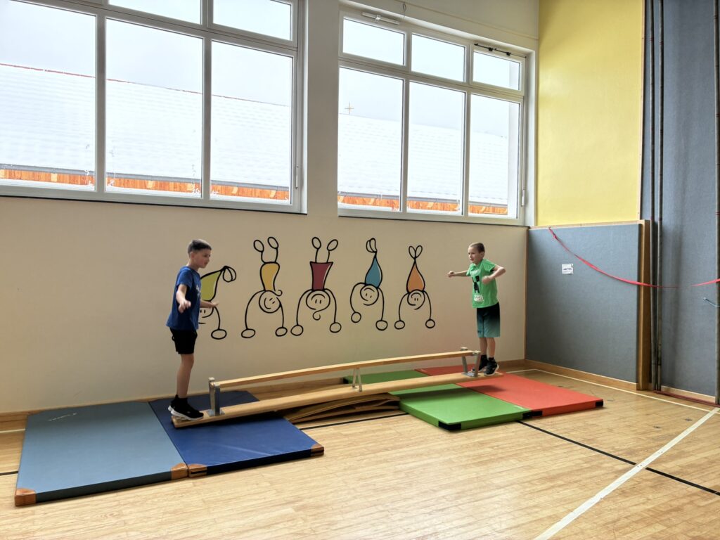 Im Turnsaal findet regelmäßig ein Bewegungsparcours statt, der abwechselnd aufgebaut wird und von allen Schülerinnen und Schülern sowie den Kindergartenkindern genutzt werden kann. Die Umsetzung erfolgt in Zusammenarbeit mit dem Kindergarten.