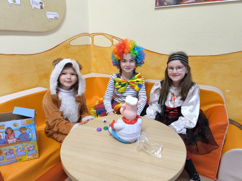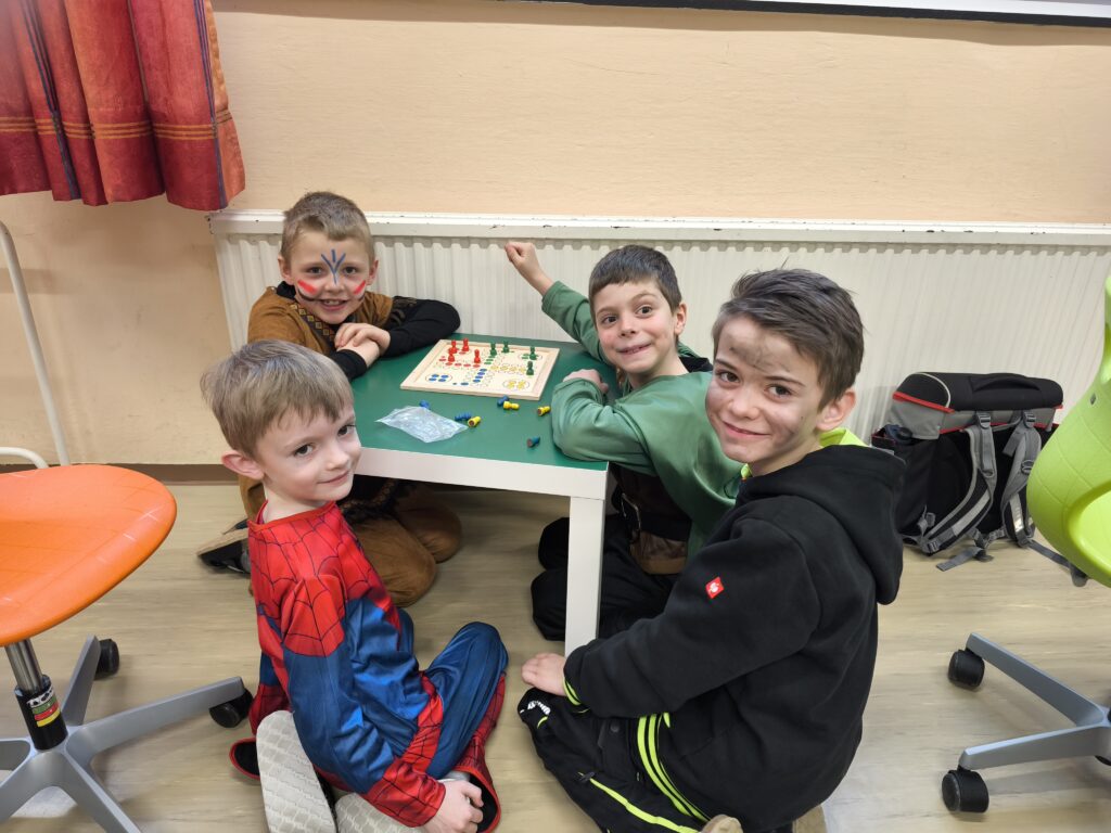 Im Anschluss wurde in den Klassen weiter gefeiert. Besonders schön war es zu sehen, wie fürsorglich und hilfsbereit unsere Schulkinder die Kindergartenkinder unterstützten. Gemeinsam wurde gespielt, gelacht und gefeiert, ein tolles Miteinander, das unseren Fasching zu etwas ganz Besonderem gemacht hat.