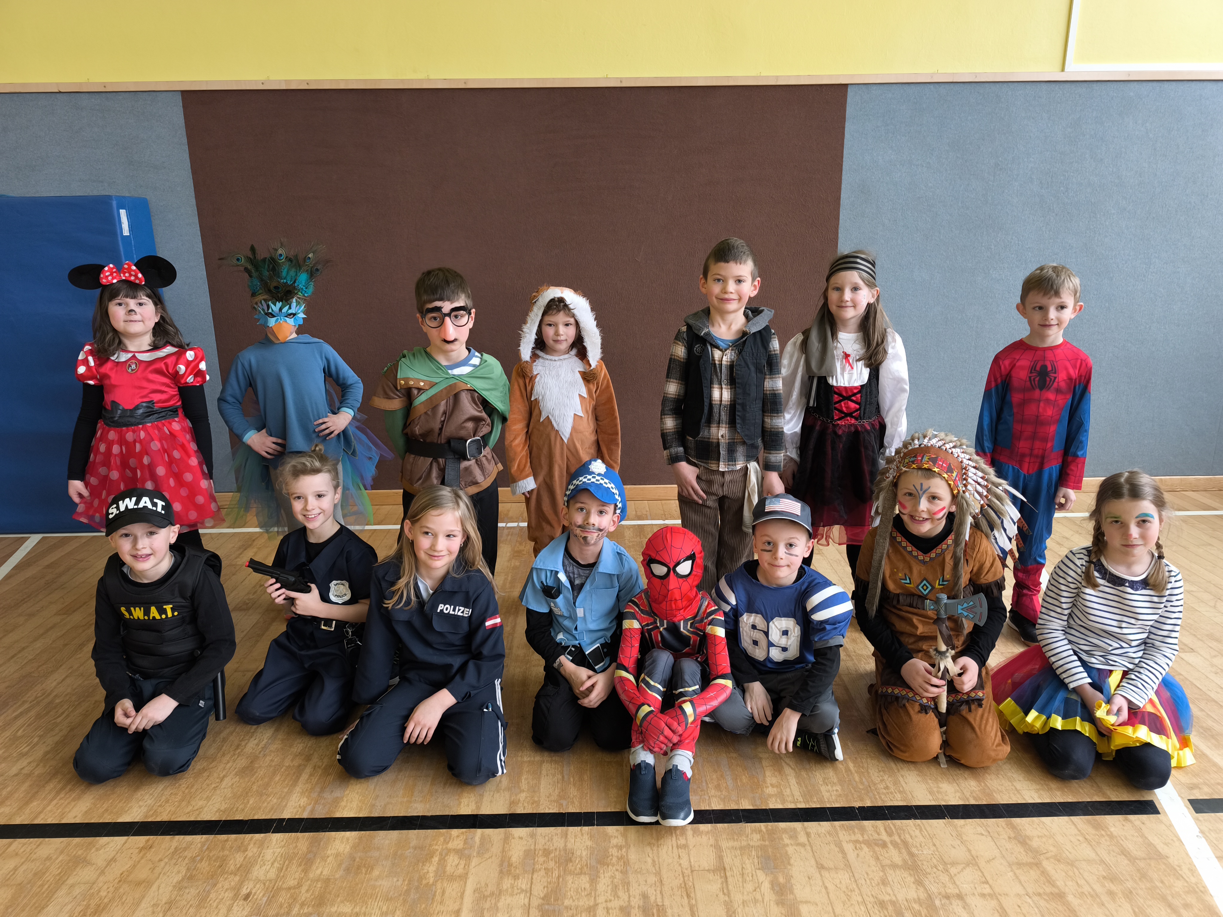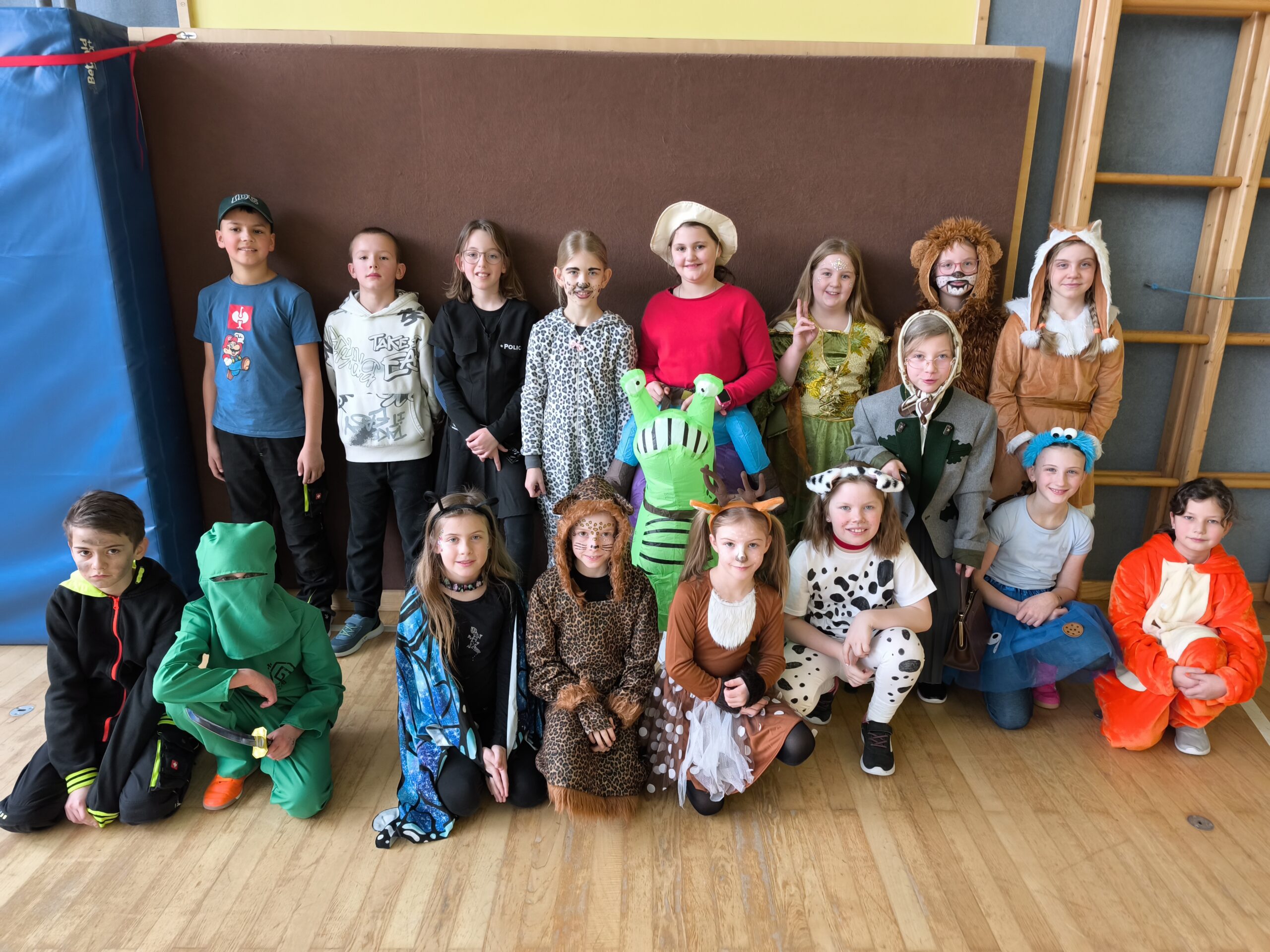 Zu Beginn trafen sich alle Kinder im Turnsaal, wo gemeinsam gesungen und getanzt wurde. Die Stimmung war großartig, überall sah man Prinzessinnen, Superhelden, Tiere und viele weitere kreative Verkleidungen. Natürlich durfte auch heuer unser beliebter Catwalk nicht fehlen! Mit viel Selbstbewusstsein präsentierten die Kinder ihre fantasievollen Kostüme auf dem Laufsteg.