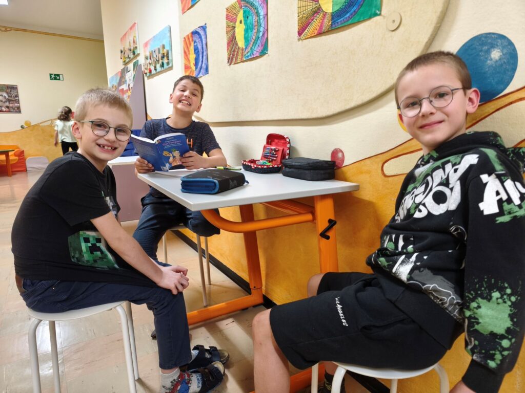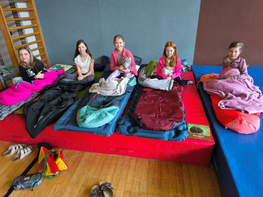 Am Freitag, den 13. April, fand die Lesenacht der 3. und 4. Schulstufe statt. Zunächst lasen die Kinder Rezepe und bereiteten die Jause zu. Aufgrund der Olympischen Spiele drehen sich heuer im Lesepass der Initiative „Zeit Punkt Lesen“ die Leseaktionen um Sport und so lasen die Kinder im Anschluss im Turnsaal in akrobatischen Lesepositionen und versuchten dabei noch, Leserekorde aufzustellen. Nach dieser Anstrengung war die Jause verdient! Danach arbeiteten die Schülerinnen und Schüler an Texten zu unserer Klassenlektüre „Vamperl“, aus denen eine Zeitung werden soll. Die Zeitung wird dann beim Kreativwettbewerb “Zeit für Zeitung – eure Storys sind gefragt!” von „Zeit Punkt Lesen“ eingereicht. Den Abschluss des Abends bildeten ein Nachtspaziergang und das Lesen mit Taschenlampe vorm Schlafen gehen. Am nächsten Morgen gab es noch ein gemeinsames Frühstück!