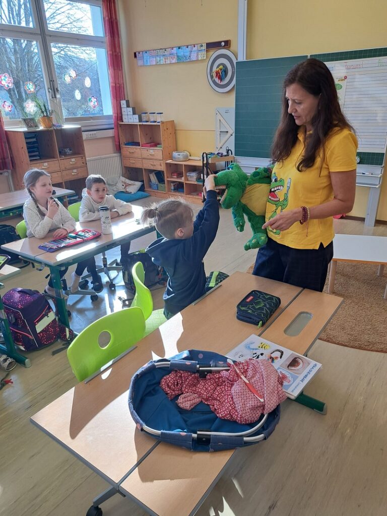 Am 19.03.2026 fand an unserer Volksschule wieder das beliebte Projekt „Apollonia“ statt. Die Kinder durften dabei einen ganz besonderen Besuch begrüßen. Die freundliche Krokoline kam in die Klassen und sorgte für große Begeisterung.